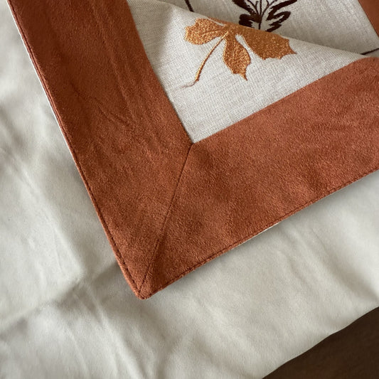 Harvest Maple Grid — Embroidered Cotton-Linen Table Runner