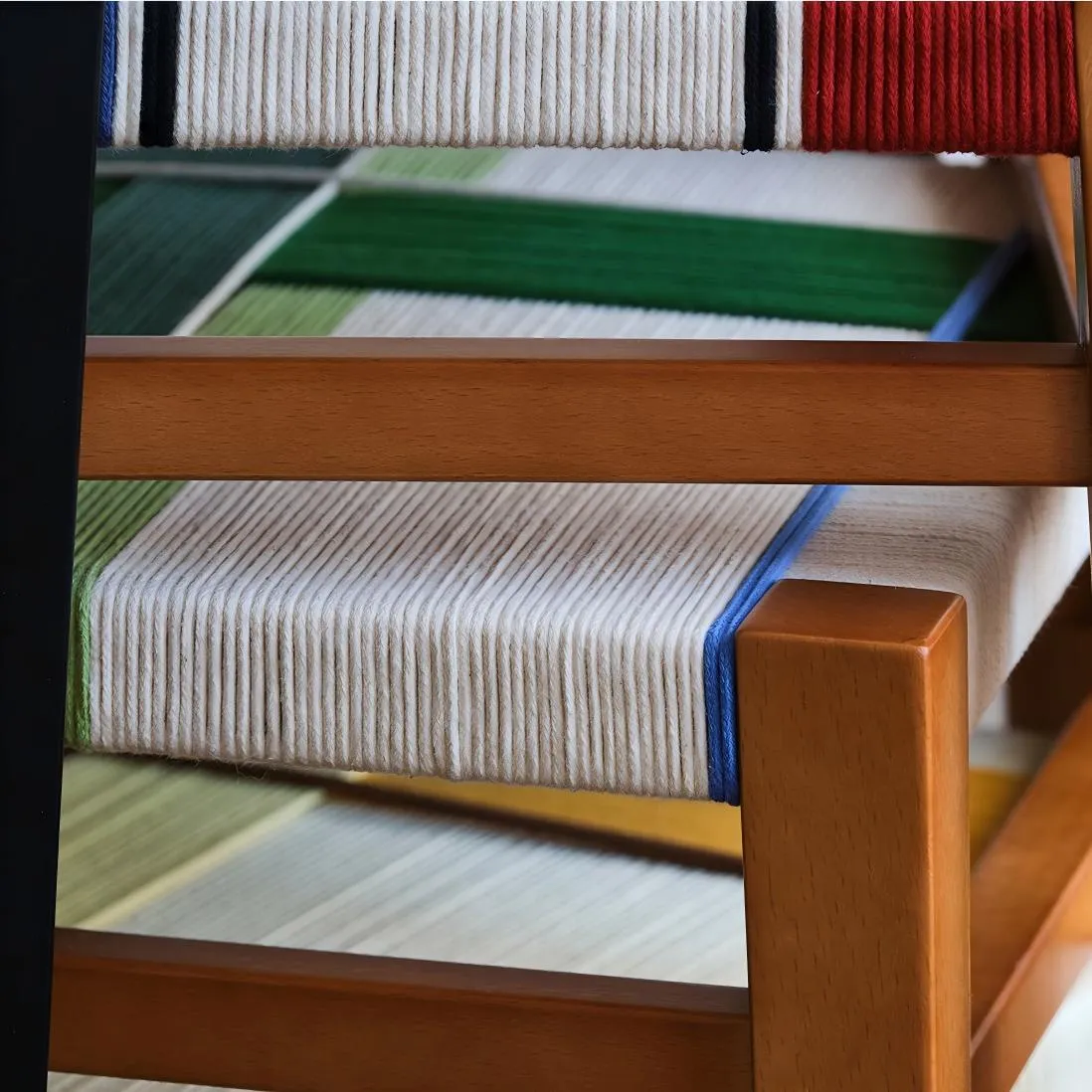 Woven with 200+ meters of cotton rope. Each line is tensioned by hand to create a durable, tactile surface.