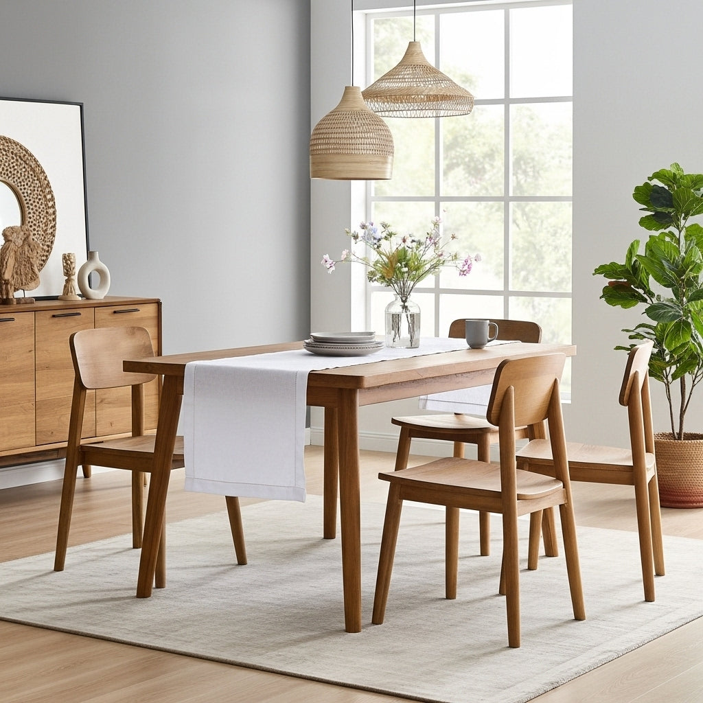 White Solid Linen Table Runner